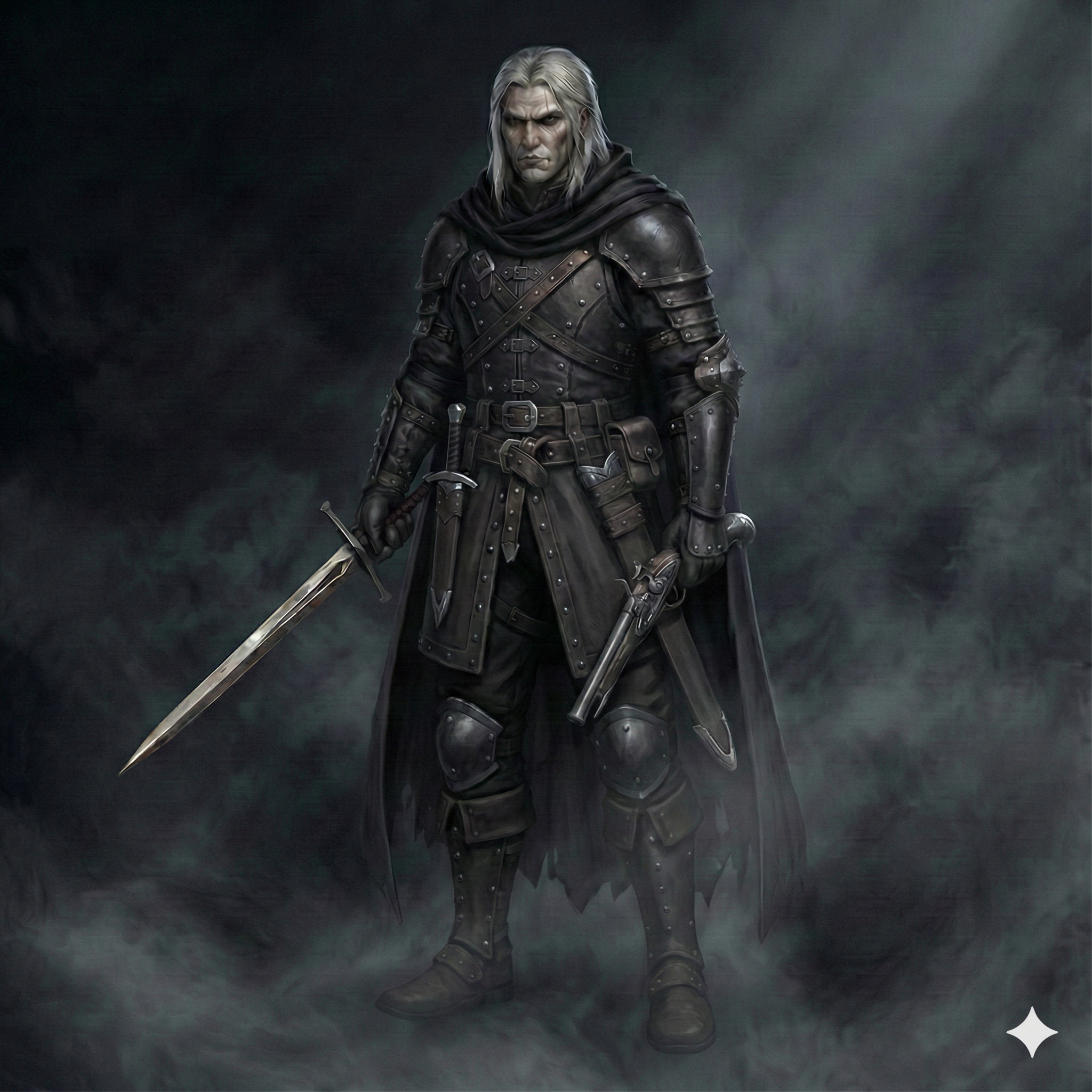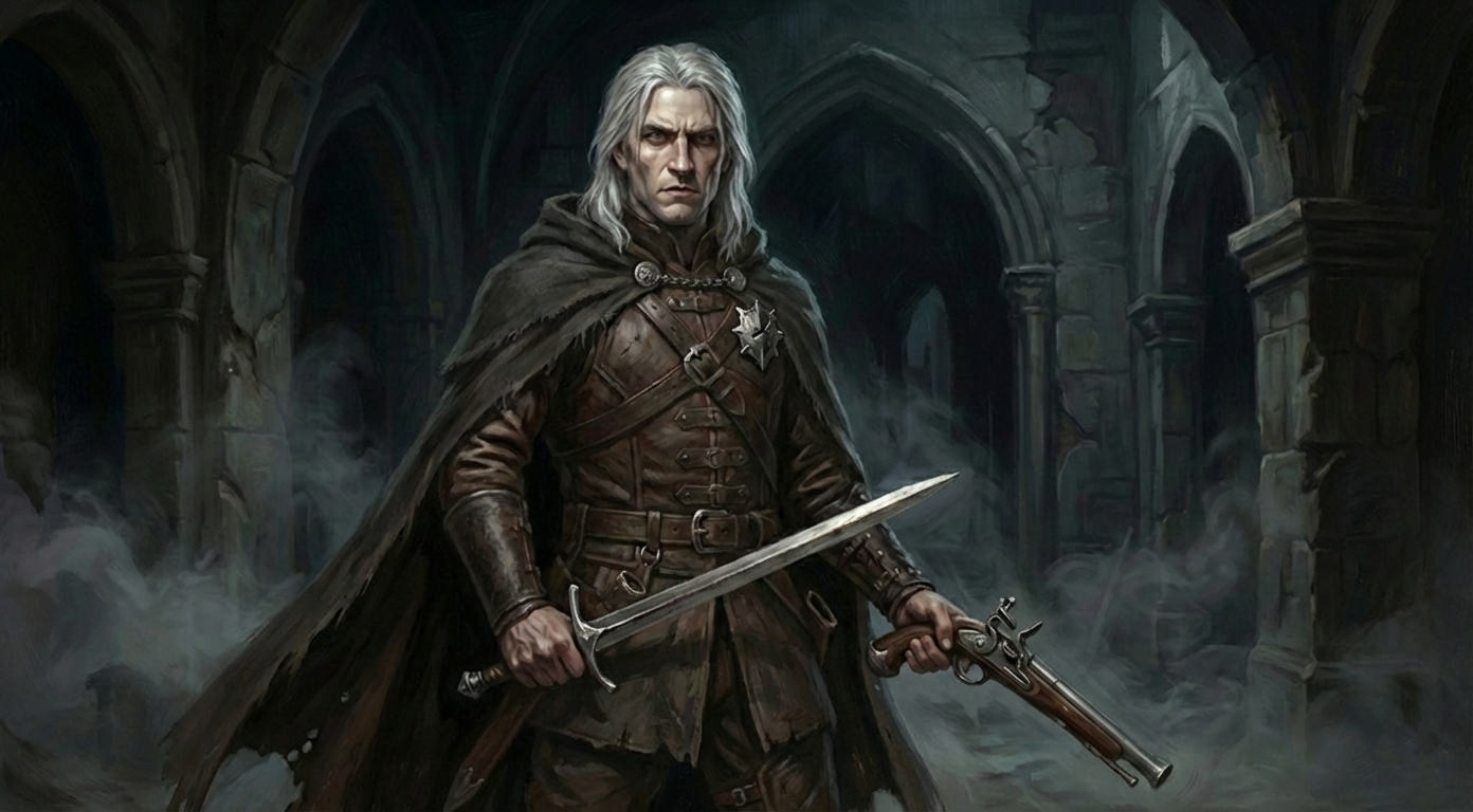 He carries his Heavy Crossbow for the opening shot, a silver-edged Shortsword for the work, and a Dagger for the finish. He doesn’t see himself as a knight anymore. He is a verdict. He is the thing that makes vampires check the shadows behind them. He walks the line between man and monster, the silver badge of the Gauntlet hidden against his pale chest, channeling the magic of the wild into the justice of the dead.